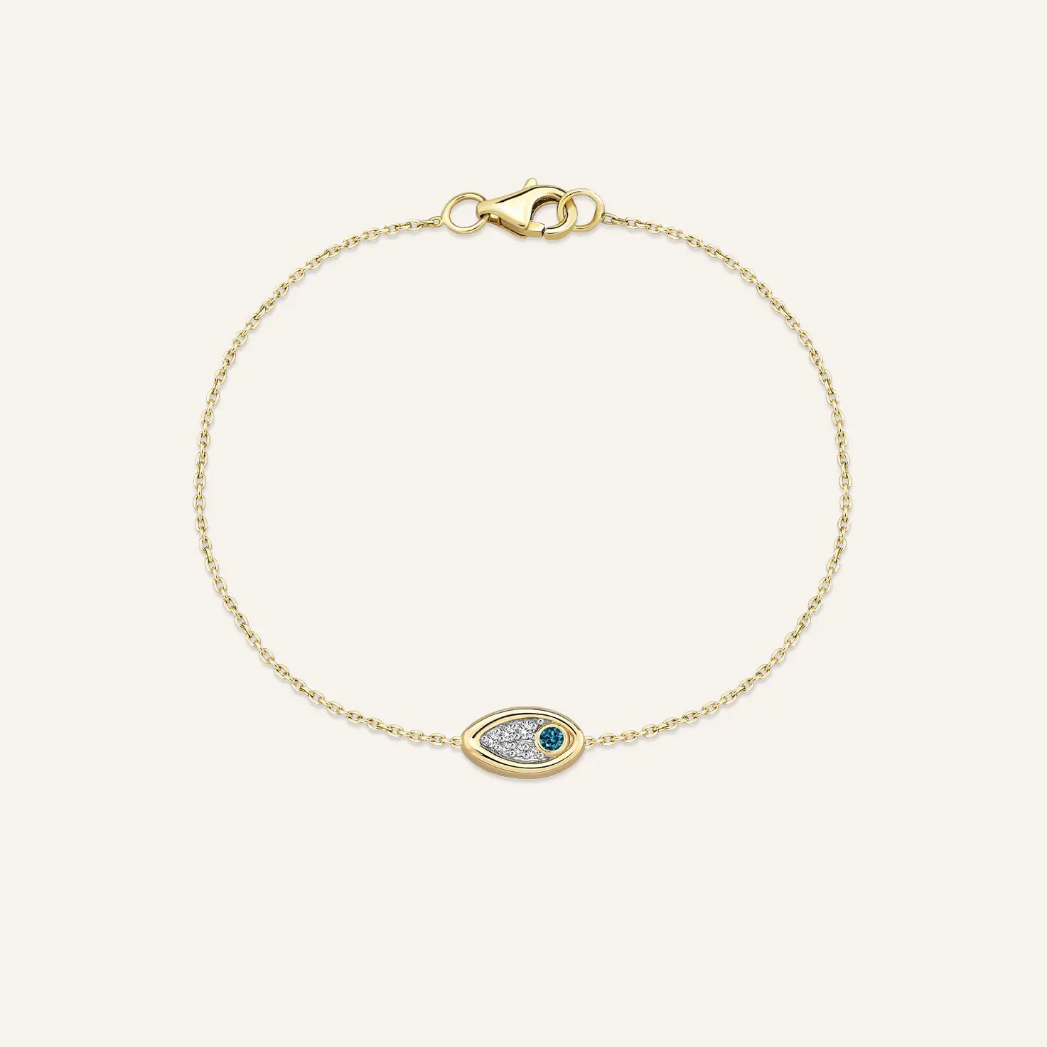 14 ayar altın bu zarif bilezik, modern formuyla sade bir şıklık sunuyor. Oval yapısındaki pırlanta detaylar, tasarıma zarif bir parlaklık kazandırırken; mavi topaz taşı denge ve huzurun simgesi olarak öne çıkıyor. Fragments Koleksiyonu’nun ruhunu yansıtan bu tasarım, kusursuz olmayan formların içindeki uyumu ve doğal bütünlüğü hatırlatıyor.