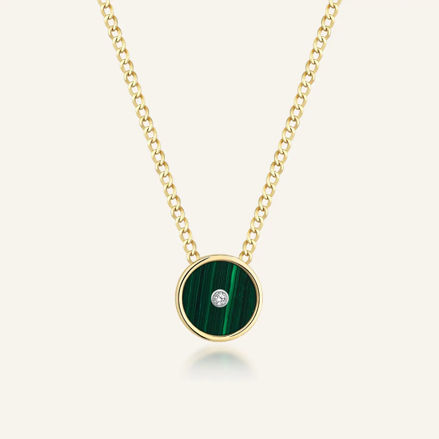 14 Ayar Altın Malakit Taşı & Pırlantalı Kolye
