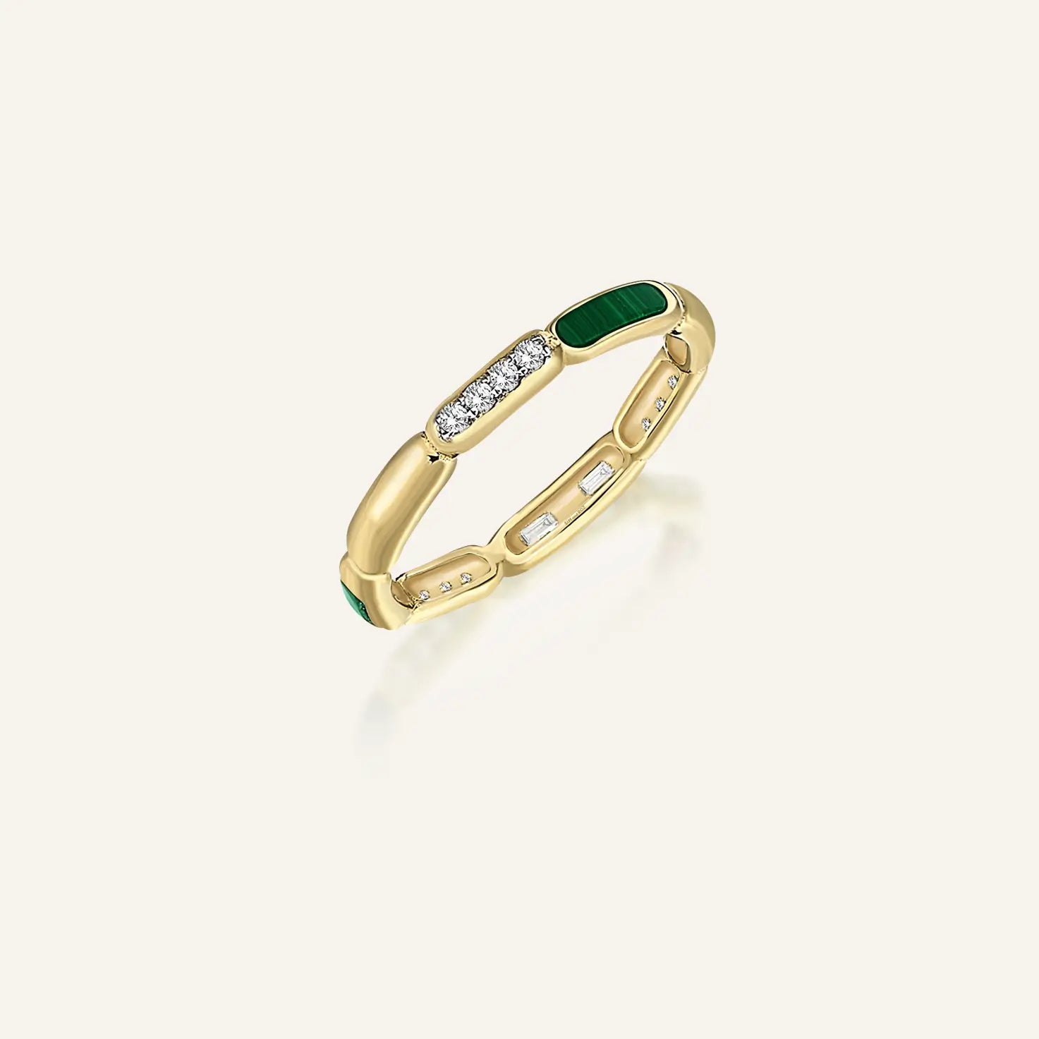 14 Ayar Altın, Malakit & Pırlanta İnce Tam Tur Yüzük