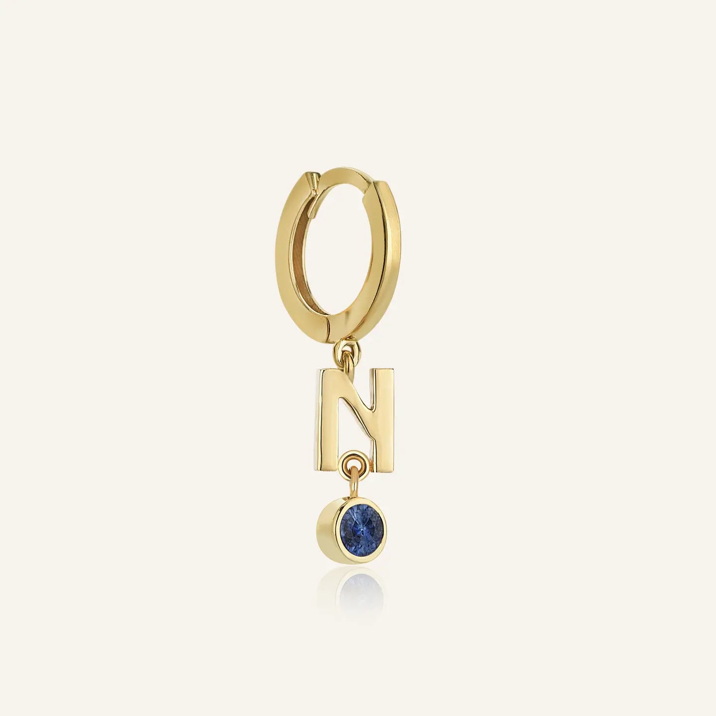 14 Ayar Altın Safir Taşı N Harfi Tekli Küpe