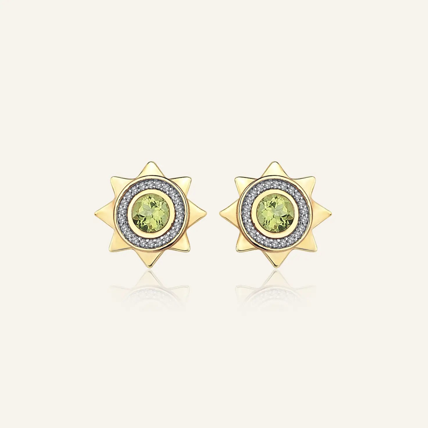 Mini Beam Sarı Altın Peridot Taşlı Stud Küpe Equinox Koleksiyonu’nun gece tarafındaki huzurlu ışıltıyı yansıtıyor. 14 ayar altının sıcak parıltısı, peridot taşının yumuşak yeşil tonlarıyla buluşarak gecenin sakin enerjisini simgeliyor.