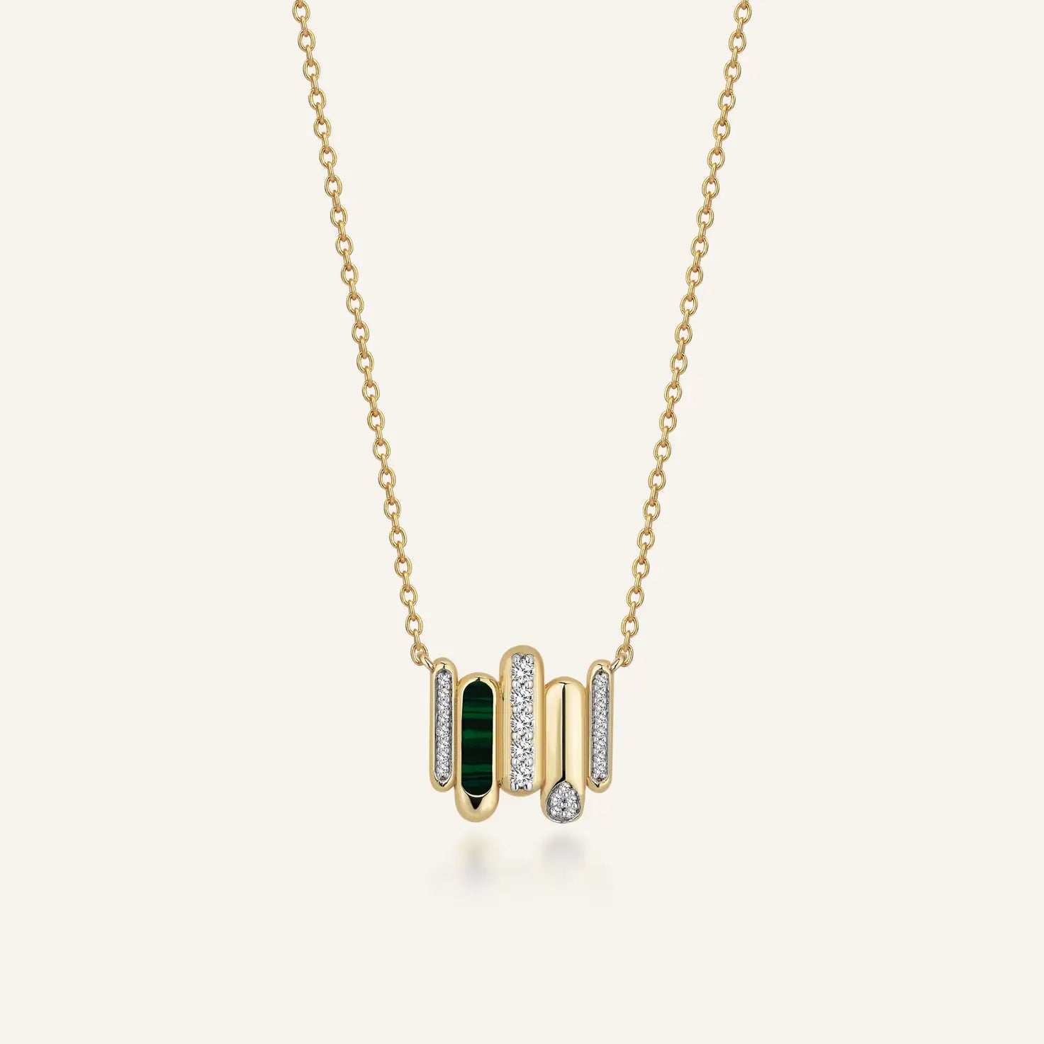 14 Ayar Altın, Pırlanta & Malakit Taşlı Dikey Formlu Kolye