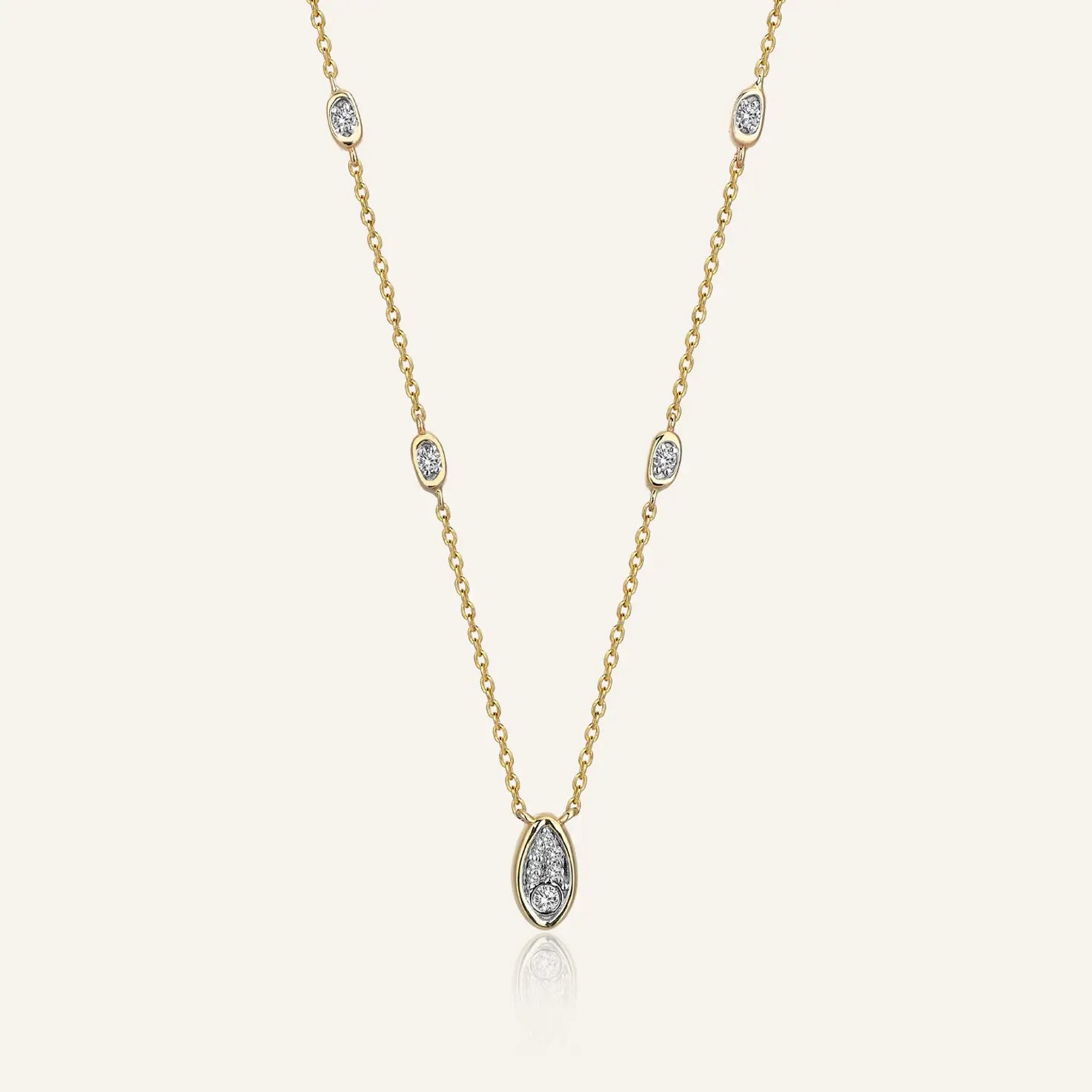 Loops Pırlanta Zincir Kolye, zincir boyunca yerleştirilen pırlantalı oval formlarıyla hayatın döngülerinden ilham alıyor. Her form, farklı bir izi ya da anıyı simgelerken, bir araya geldiklerinde kusursuz bir bütünlüğün ifadesine dönüşüyor. Pırlantaların ışığı, kolyeye zarif bir ritim ve ince bir ışıltı katıyor.