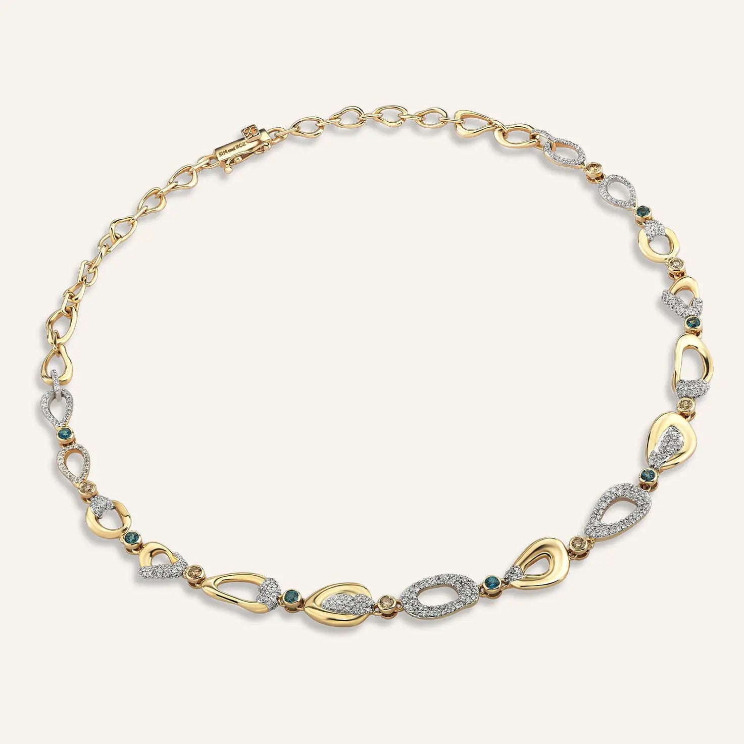 14 Ayar Altın, Pırlanta & Topaz Taşlı Amorf Formlu Kolye