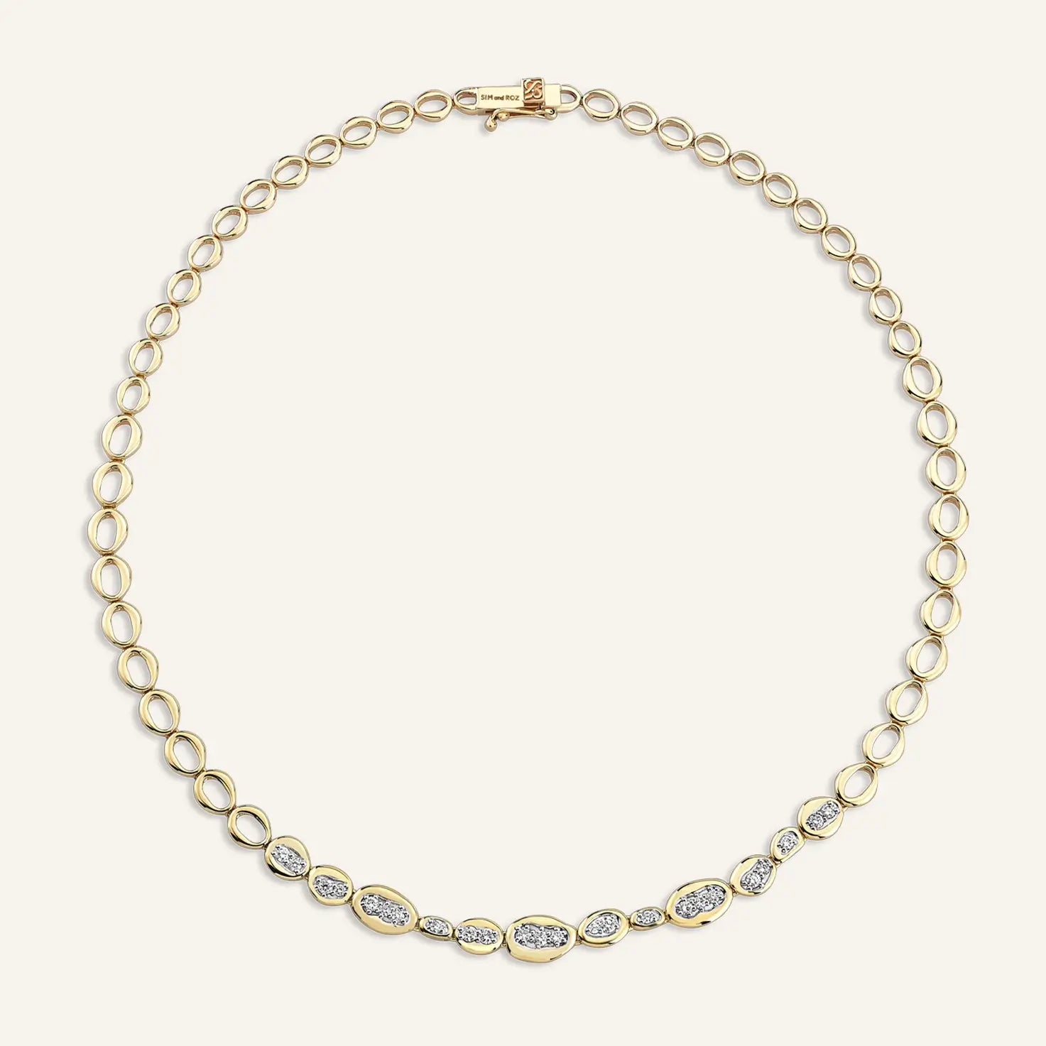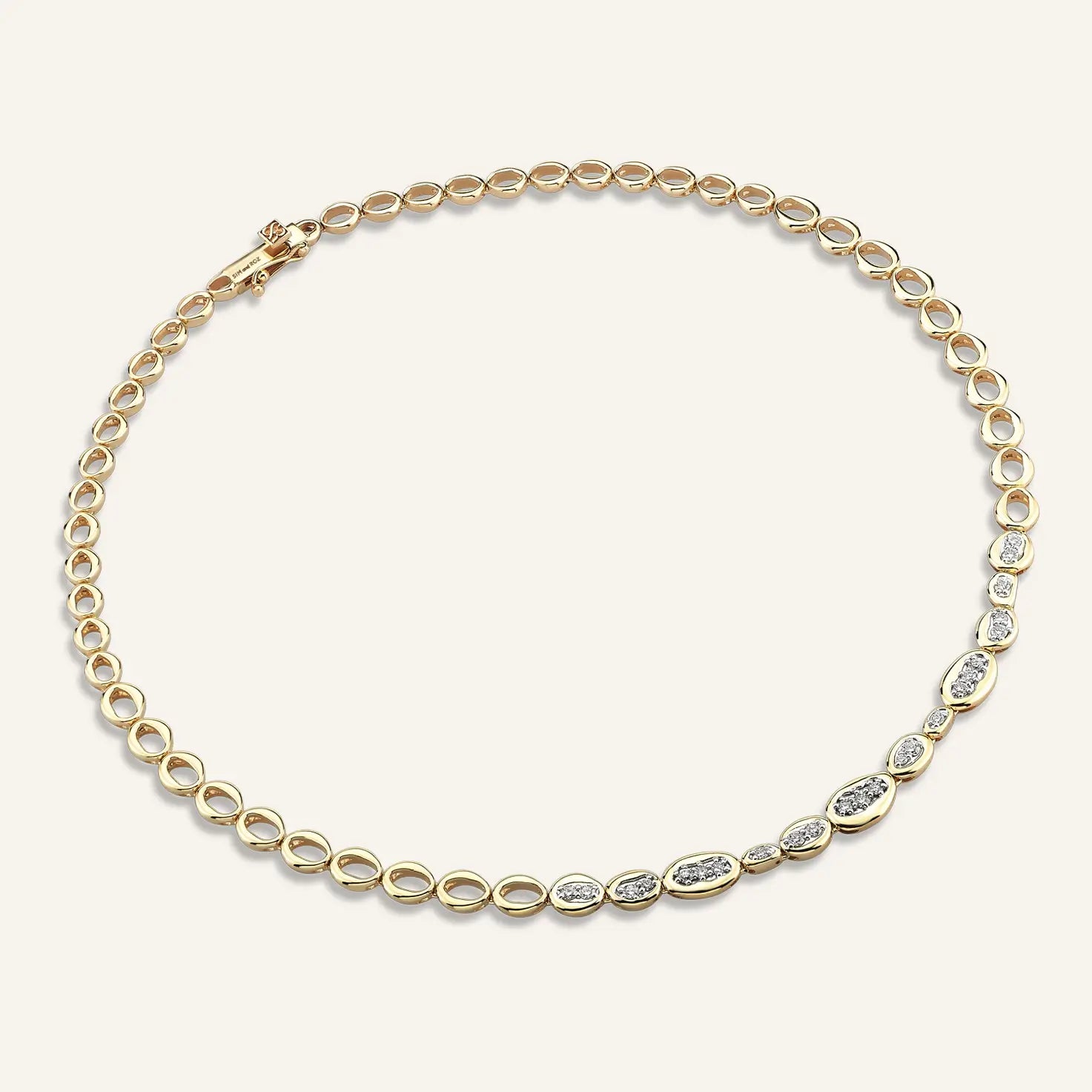Fragments Koleksiyonu’nun zarif ama güçlü parçalarından biri olan Loops Pırlanta Kolye, küçük ve büyük oval formların modern bir ritimle birleşmesinden doğuyor. Her biri pırlantalarla işlenmiş parçalar, farklı yoğunluklarda ışıldayarak dinamik bir akış yaratıyor. Hem gündüz hem gece kullanımına uyum sağlayan bu kolye, zamansız şıklığın ve modern zarafetin dengeli ifadesi.